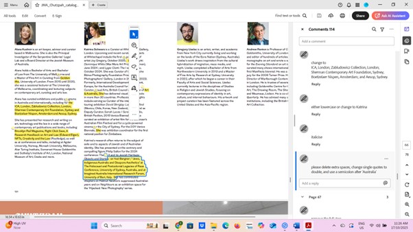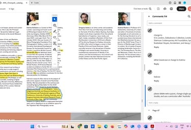 I mark up PDFs of documents that have been copyedited in-house by an institution (either a publisher or a gallery), identifying any final corrections to be made and ensuring material complies with the institution's style guides.