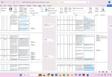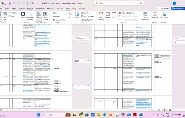 At the proofreading phase, I mark up the final proofs of documents that have now been designed and laid out in PDF. Again, a few versions can go back and forth until the project is signed off.